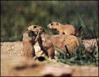 Prairie dogs are sociable creatures, and their nuzzling and grooming antics make them entertaining to watch. Their "kissing" behavior (touching of noses with bared teeth) is the way the identify members of their own coterie.