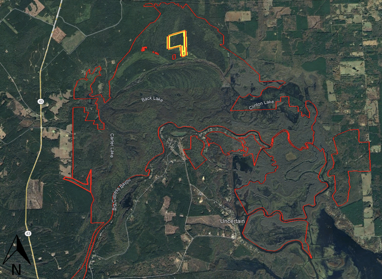 Caddo Lake Wildlife Management Area State Outlined in Red