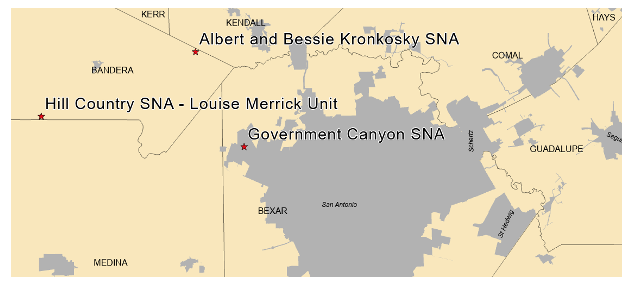 II. Discussion: Government Canyon SNA consists of approximately 12,000 acres situated along the edge of the Balcones Escarpment on the northwest side of San Antonio. The SNA is a karst preserve protecting the quality and supply of fresh water to the Edwards Aquifer, where topography and stratigraphy recharge the aquifer through a series of subterranean cracks and caves. The SNA protects thousands of acres of the aquifer’s recharge zone, as well as portions of the contributing and artesian zones. In addition, these crevices, fissures, and springs are home to several endangered invertebrates found nowhere else in the world.