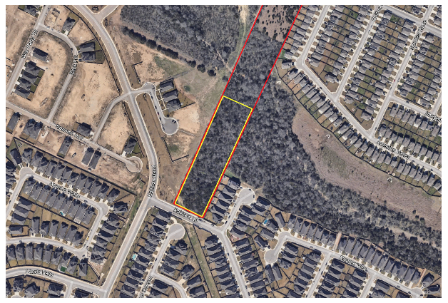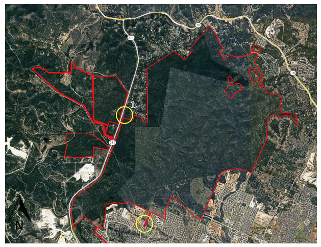 Proposed Land Swap from Bexar County ESD 7 to TPWD Outlined in Yellow
