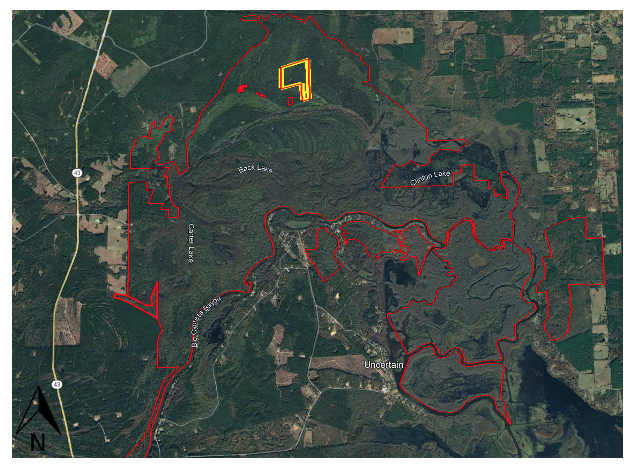 Caddo Lake Wildlife Management Area State Outlined in Red