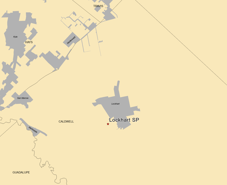 Vicinity Map for Lockhart State Park 35 Miles Southeast of Austin
