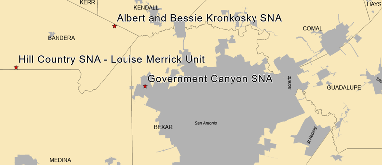Location Map for Government Canyon State Natural Area Bexar County