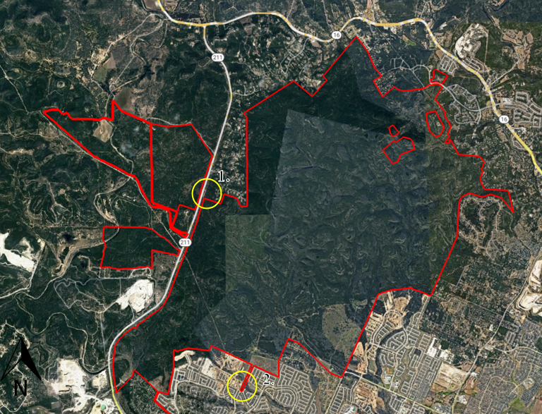 Proposed Exchange of Land Area Two Government Canyon State Natural Area Outlined in Red Proposed Land Swap from TPWD to Bexar County ESD 7 Outlined in Yellow