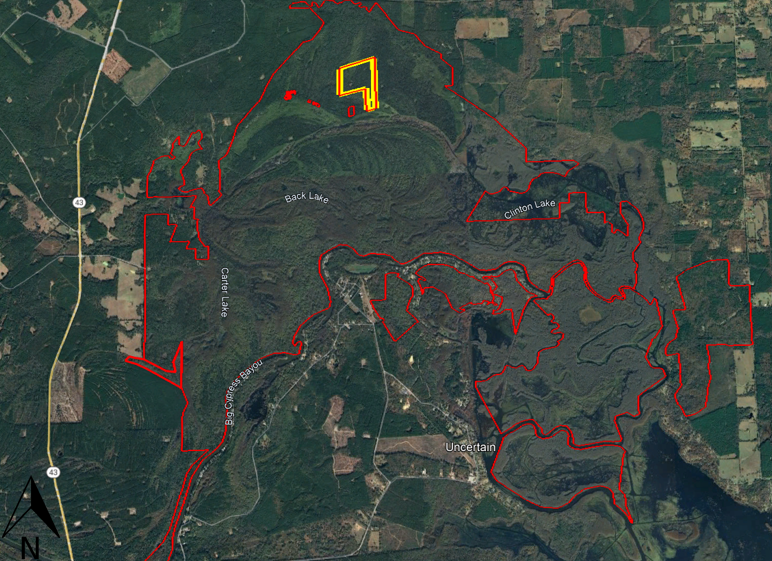 Site Map of Proposed Acquisition Caddo Lake Wildlife Management Area State Outlined in Red Subject Tract Outlined in Yellow