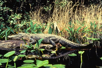 Alligator in swamp