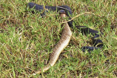 Indigo snake eating a Diamonback rattlesnake