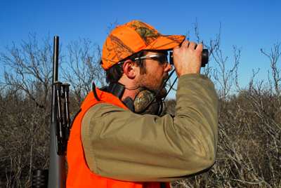 hunter peering through binoculars