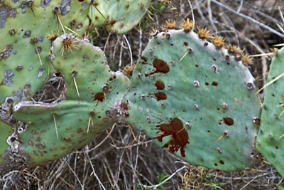 Blood on cactus pads
