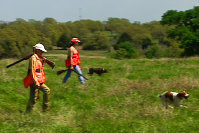 Quail hunters with dog
