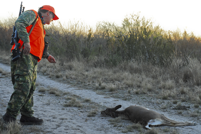 hunter looking at downed deer