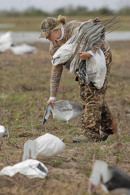 Hunter picking up rag decoys