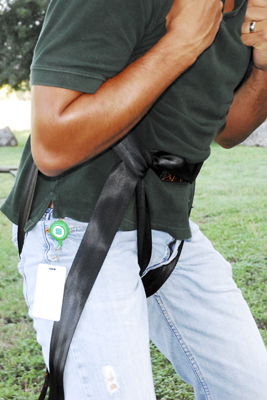 closeup of harness fit