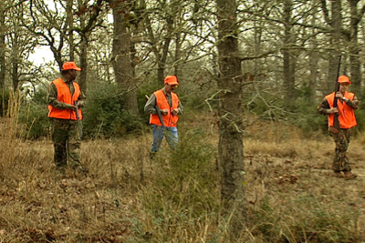 hunters walking in woods