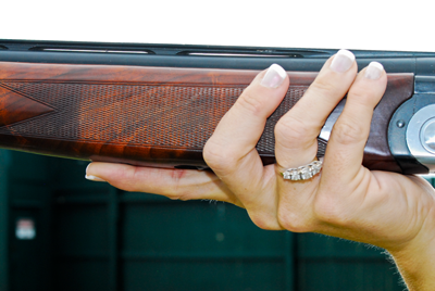 pointing index finger supporting shotgun