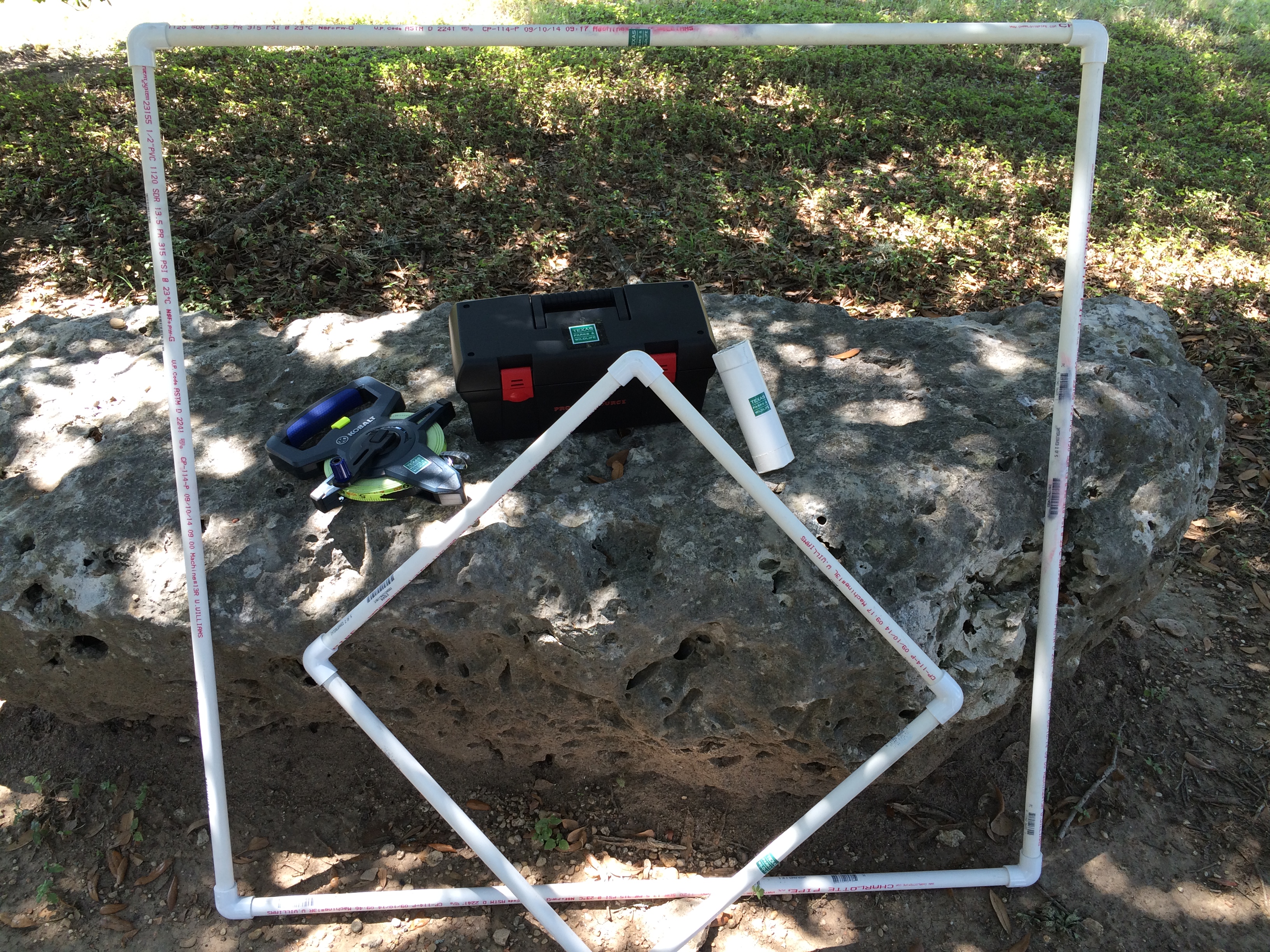 Here is a collection of tools used in a typical field investigation. Sampling tools such as Quadrats, measuring tape for Line
