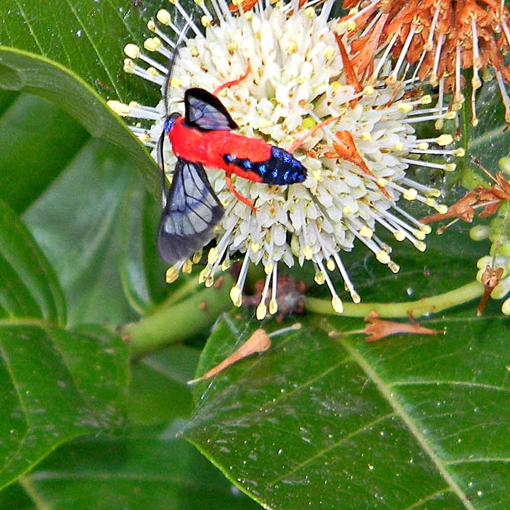 Scarlet-Bodied Wasp Moth (Cosmosoma myrodora)